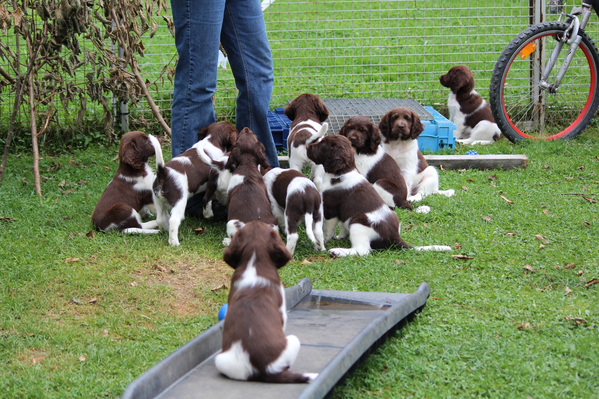 Seit nunmehr 10 Jahren züchten wir Kleine Münsterländer in einer Hobbyzucht (keine gewerbliche Zucht) und hatten mit unserem Wurf in 2021, dem I-Wurf, stolze 11 Kleine Münsterländer. Mit Liebe und Leidenschaft wachsen die kleinen Racker bei uns auf und werden, während der ersten Wochen, an viele Dinge gewöhnt, wie Menschen, Tiere, Geräusche, Gerüche, Wasser, Wald- und Wiesenspaziergänge. So gehen die Welpen nach 8-9 Wochen mit schon einigen Erfahrungen in ihre neuen Familien.